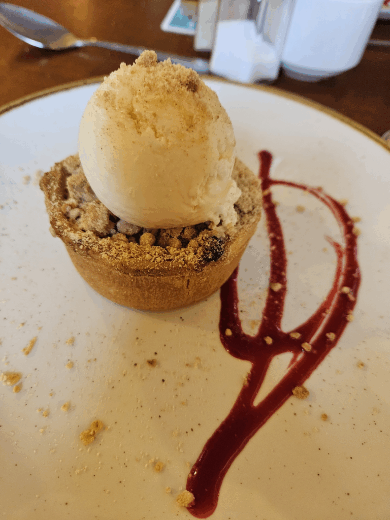 The only thing that prevented me from being the rudest zombie in history was the food. It kept me alert and pleasant enough to make it through the rest of the evening. Going to The Brazen Head literally saved my life. I had their Fish and Chips, but I was heavily contemplating the Beef Stew. I would have gotten it if it was not the last thing I had for dinner while I was still in the states. Shout out to my mom for making one of my favorite dishes before I left. The Fish and Chips were good, I have had the meal before so I wasn’t astounded at the concept. The Apple Crisp thing that I had for dessert though. Oh, that made my day.