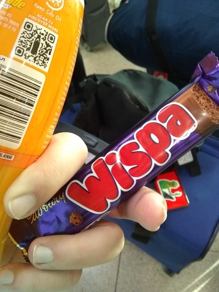 After getting literally no sleep on the flight before, we arrived at around 6:00 AM in Dublin time. Everyone was basically a zombie, soooo tired after not having slept much, and now we had to wait for the arrival of the CEA people. But, we had about two hours to kill until they arrived. At first, I thought that this could be a chance to sleep. But that was quickly quashed, as the airport was noisy, and the seats were uncomfortable. So, we looked around, and I decided to get an energy drink and a chocolate bar as my first Dublin snacks. Very interesting names, I must say.