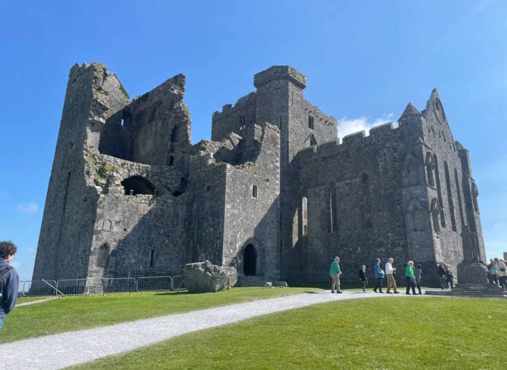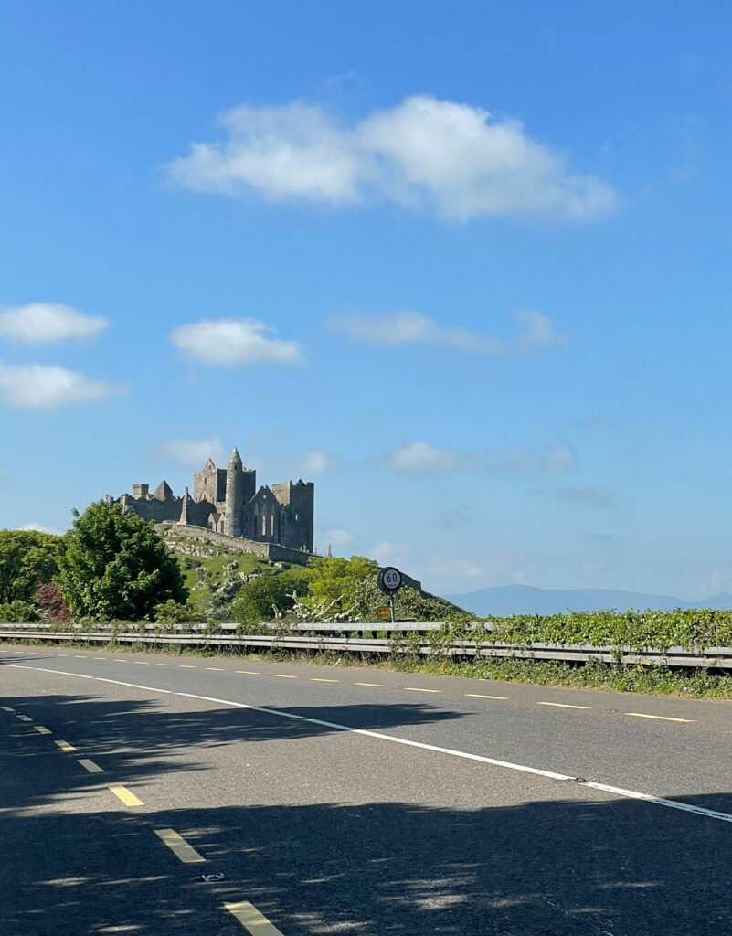 Hi blog today was a ton of fun. Myself and two of my classmates (Ayden and Paula) took a tour bus with Paddywagon to see other parts of Ireland. During our full day tour we got to stop at Rock of Cashel, Cork and then our main destination Blarney Castle. We started our journey at 8:00am as our bus departed from Dublin. Our tour guide was so much fun he gave us tons of fun facts on our way and his storytelling skills were top tier. Our first stop was at Rock of Cashel which was just this huge castle. We weren’t here very long but we had enough time to walk through the castle and take pictures of the view that overlooked the fields below. This castle had a couple round towers that made it look like something magical from a Disney movie.
