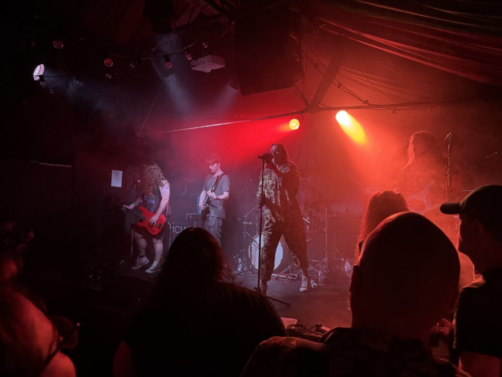 I am very happy with my tattoo, and it was really fun that Grace and I both got them! The next activity was another guest lecture. This was from Dr. Niall Gilmartin from Ulster University. He spoke on Northern Ireland and it’s Media during the troubles. This lecture was a little hard to follow, but still educational. He started out by doing a bit of background on how Northern Ireland was first partitioned from the republic. From here he would go into how the media affected people’s opinions on Northern Ireland and the conflict, as well as how the media was used to change perspectives. Both sides of the conflict used the media in different ways to try and benefit themselves or weaken the other side of the conflict. The Protestants would use the media to portray Catholics as problems, and would continue to manipulate how people viewed the IRA throughout the troubles. This even led to false information being put into government records because of how the media was so badly twisted. It was truly crazy how he told us that IRA soldiers would be murdered, and the Loyalists would frame it in a way that they were the heroes. It just goes to show that history is written differently depending on who’s writing it. Broadcast media also played an important role during the Troubles. Radio, and later television was used to great effect during this time. It had a huge effect on people’s everyday lives, giving them updates on the conflict. It also became used for propaganda purposes and pressured people to act in certain ways. It was also interesting how limited journalists power became during these times, as the government would make people censor certain articles or broadcasts. Overall, the media was huge for this time period in Irish history and still needs to be studied to this day to understand its full effects. The final activity of the day was another big one. I am a huge metalhead – I love heavy and fast music, and the adrenaline rush it gives me. So, when I found out from a friend that Gama Bomb – a thrash metal band from Ireland – would be performing in Dublin during our visit I knew I would have to go see them. And even more fun was that I convinced Max and Ash to come with me. The venue was the grand social. We arrived fairly early, so we got to look at the merch and get some drinks. Max got a shirt, so right away I could tell he was getting into it. Both Ash and Max were having a blast at this concert. And I loved it as well.