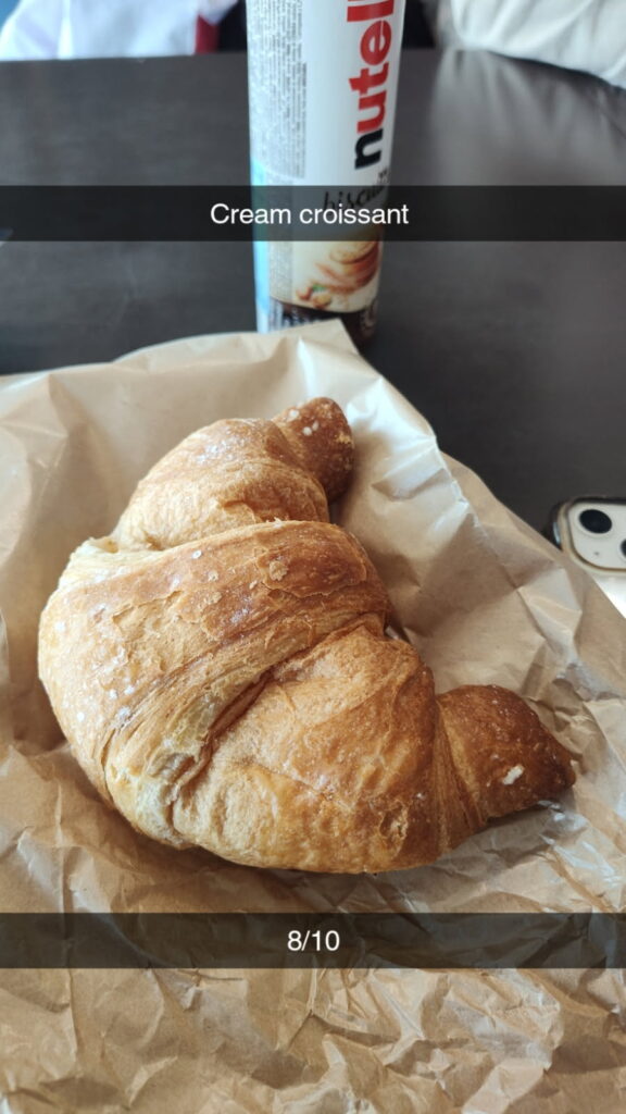 I was very sad whenever I heard Mel’s alarm clock go off at 8 am. Why couldn’t we just stay in Venice for the rest of the week? We had a slow start to our morning to the point where we almost missed our shuttle to the airport. The stress level was already high at 9 in the morning, so what does this say for the rest of the day? We got to the airport early enough for us to get food, get through security, and sit down for a little. We stopped at a gift shop on our way to our gate. We got Nutella Biscuits and another type of cookie that seemed interesting. We stopped at a little café pretty much right after the shop. We got a cream filled croissant and a Nutella donut. If you can’t tell, we love croissants and all things Nutella. I would rate both pastries as a 7 or 8 out of 10. We decided to try and find somewhere to sit since the airline was gatekeeping our gate number.