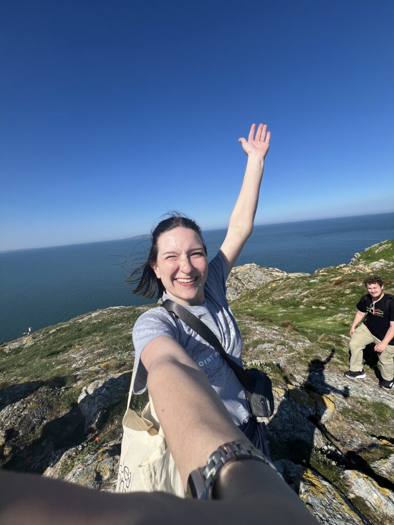 After the museum, we had the rest of the afternoon to explore Howth. We got lunch at a place called Beshoff Bros, where I tried my very first fish and chips – a delicious meal that I unfortunately forgot silverware for (smh). After we ate (and fended off some sneaky seagulls) we walked up and down the wall between the docks and the Irish Sea. It was terribly windy, making it feel quite nippy and cold; I am really glad that I wore a sweatshirt and a windbreaker jacket. We did this for a few hours before trying to figure out what we were going to do before we left. That is when we learned of boat tours that would take us to the Eye of Ireland, an island off the coast of Howth that I’d been eyeing up all day.