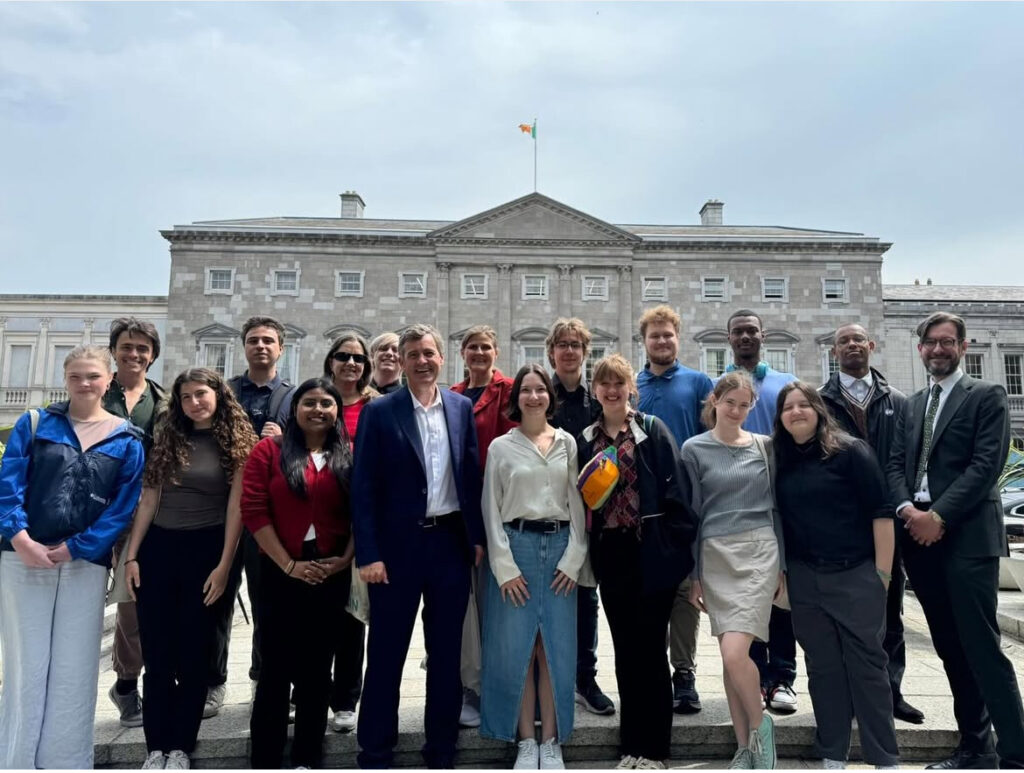 The class standing in front of Leinster House while on our visit to the Irish Parliament