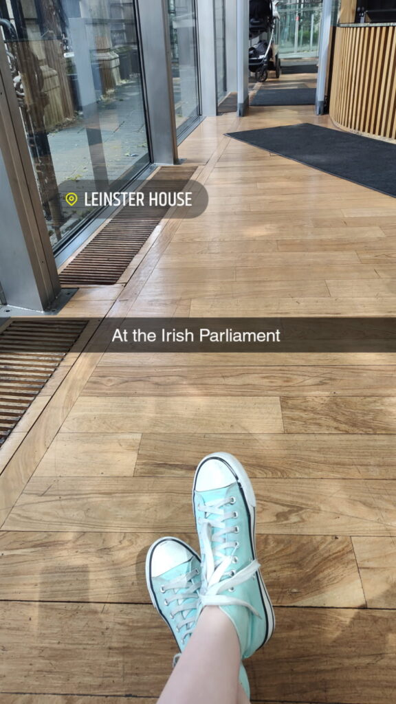Today was the day we got to see the parliament building. I did not exactly know what that meant, since I do not understand government at all. Turns out this building is very important. We were not allowed to take any pictures which is kind of sad since I could have proof of my bragging rights. We got a tour of some of the rooms and hallways of the building while learning some history of the family who used to live there. Oh yeah, the building used to belong to a huge wealthy family. The woman of the house had 21 children. Absolutely insane if you ask me. She had an affair and ended up divorcing her husband for the affair guy. It was cool getting to sit in the room where they make decisions. We sat at the top where people from the public can sit and watch. The blue carpet was so beautiful and caught my eye the second we walked in. We also got to go into what once was a dining room. It was so big. It was really cool getting to walk through the Irish Parliament, but I was excited to leave since we didn’t have much time to eat lunch.